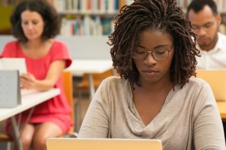 American Student Studying at Library